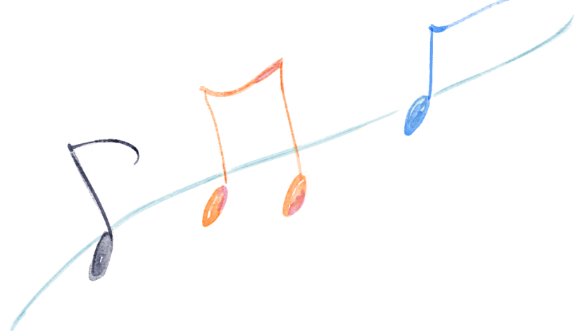 音楽を聴きながら、聴いて感じたことを、自身の身体を使い表現することにより、リズム感、音感などの音楽的な能力だけではなく、