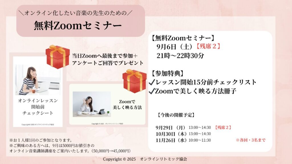 無料のZoom講座を10月と11月に開催いたします。